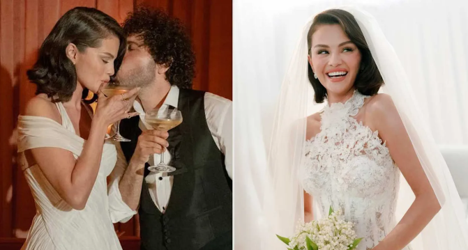 On September 27, 2025, Selena Gomez and Benny Blanco officially tied the knot at a private venue in Santa Barbara after two years of dating. Selena first announced their engagement to the world in December 2024 by sharing a photo of her marquise diamond engagement ring with the caption “forever begins now,” which gained significant attention, with many fans celebrating Gomez’s happiness and her long-awaited “happy ending.” Now that the big day has passed, let’s take a closer look at what many are calling the “royal wedding” of the music industry.