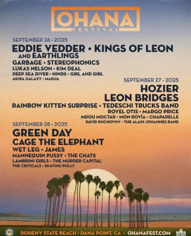 This year, the lineup of artists was especially strong. Senior Ellie Martin remarked that she was “very excited for this year’s lineup because [she] loves all of the headliners and [could not] wait” to hear them. On Friday, September 26th, one of the headliners was Kings of Leon, who was supposed to make an appearance back in 2021, but did not end up making it due to a family medical crisis, so the crowd was especially excited to finally be able to welcome them. The front man from hit 90’s rock band Pearl Jam, Eddie Vedder, is the creator of the Ohana festival and always headlines. This year he was put into the Friday slot with the band the Earthings. The Saturday set list had Leon Bridges on at 6:50 for about an hour and a half, and Hozier followed him at 8:50. The Sunday schedule which San Clemente senior Hanalei Marshall mentioned she was “looking forward to seeing the most,” brought Cage The Elephant out on stage at 6:25 for an hour and had Green Day close out the weekend.